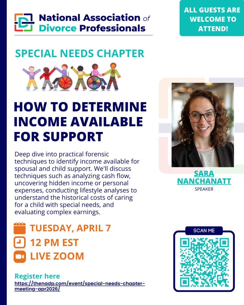 Chapter meetings occur monthly and are facilitated by the chapter leadership. In addition to networking and building relationships, each member has the opportunity to present an NADP ED Talk and provide valuable divorce-specific education to their fellow chapter members.