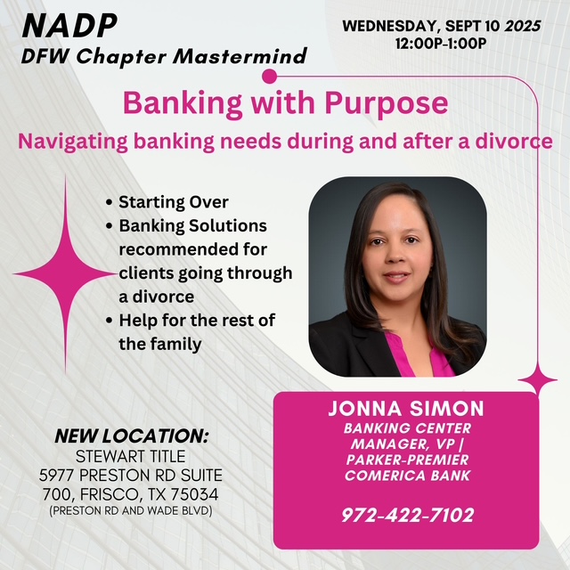 Join us for our NADP Dallas Fort Worth, Texas Chapter meeting to connect, communicate and collaborate with fellow divorce professionals.